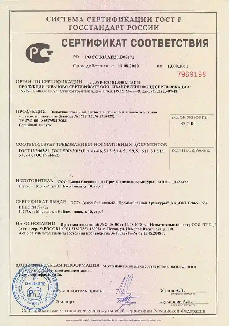 Высокий технологический уровень и широкая производственная база позволили предприятию наладить производство запорной арматуры, отвечающей всем российским и международным стандартам.